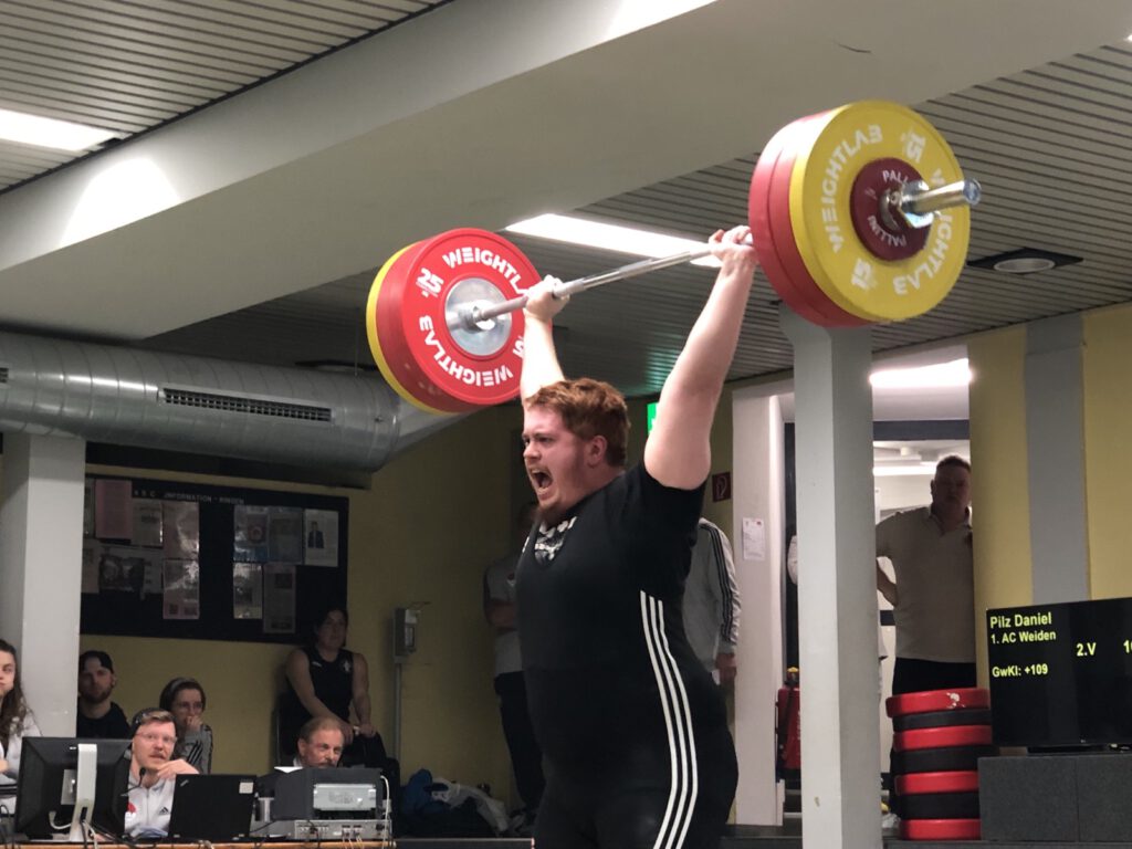 Umso verbissener kämpfte die Mannschaft von Weidener Vorstand und Trainer Silvio Tröger dann im Stoßen weiter. Laura Rückerl konnte sich hier ebenso deutlich steigern wie Daniel Pilz und Johannes Popel. Die Röthenbacher wollten keinen Zweifel aufkommen lassen, warum sie die Tabelle der Bayernliga anführen, allen voran Lukas Walker, der mit 109 Relativpunkten nicht nur die beste Leistung des TSV, sondern der ganzen Veranstaltung ablieferte. Alexander Narr und Daniel Pilz versuchten in ihren letzten Versuchen, den Rücksprung zum Gegner wieder aufzuholen, mussten sich der Hantellast von 160kg beziehungsweise 165kg aber geschlagen geben.
